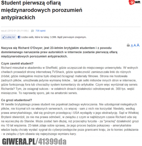 Zaczęło się! Pierwsza ofiara ACTA