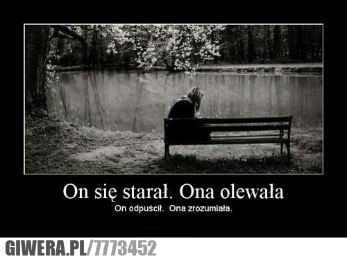 On się starał. Ona olewała On odpuścił. Ona zrozumiała.