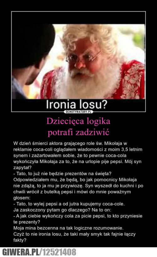 No wlasnie, a taki dorosly ojciec nie laczy faktow szkodliwosci napojow gazowanych i 3,5 letniego dziecka ?