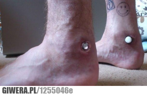 Hm...Tak się zastanawiam, że te "otwory" są idealnie w miejscu ścięgna achillesa. Jeśli tak, to nie mógłby chodzić.