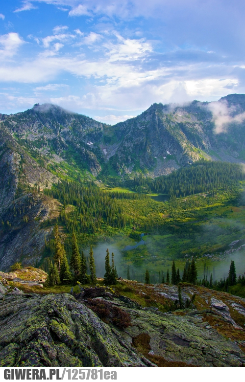 Widok z Krzyżnego w kierunku Doliny Pięciu Stawów. To samo + wyższe zbocza i stawy