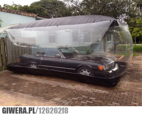 Tyle, że jak się spieszysz, to musisz najpierw spuścić gaz z tego dziadostwa i zdjąć to z wozu, bo stelaży żadnych nie widzę, to jest po prostu napompowane.