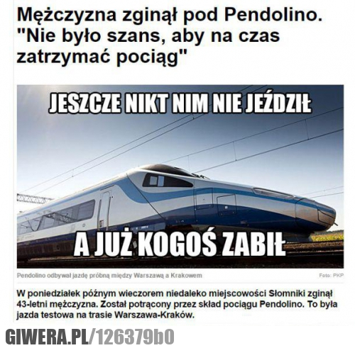 @anonim: A co, pendolino zjechało z torów i rozjechało gościa na chodniku ??
