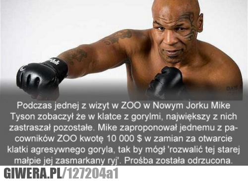 kurwa wy nie wiecie że goryl ma łape jak tajson głowe? i waży ok 300kg ...