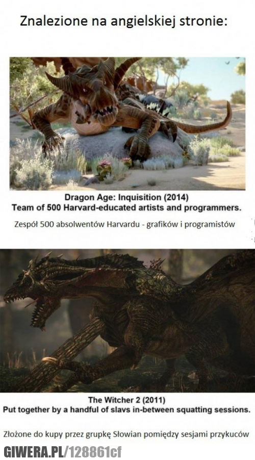 Mam dragon age inquisition i tak jak na tym zdjęciu smoki wyglądają na najsłabszych ustawieniach graficznych... Jak masz dobrego kompa i możesz grać na wyższych ustawienia to wygląda dwa razy lepiej niż na zdjęciu z wiedźmina. Wiem bo sam sprawdzałem :P