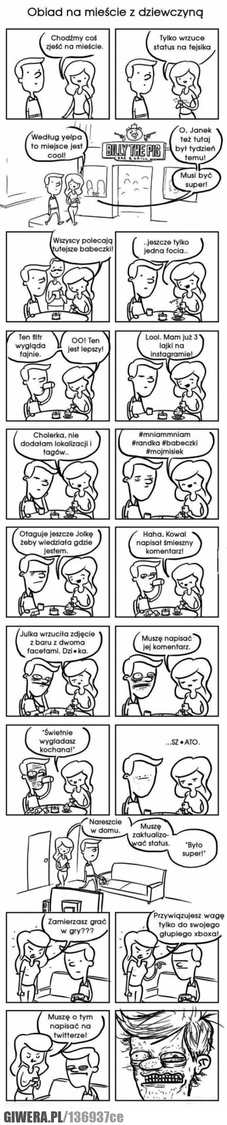 Uległy pantofel. Jak sobie wychował, tak ma. :) Ja bym poprosił, by schowała telefon do kieszeni podczas randki. Z resztą, na ch*j się produkuję, typ zabiera laskę na randkę (pozwalając jej wybrać lokal...), a po wszystkim idzie grać na konsoli, zamiast ją sowicie wy***kać pod drzwiami wejściowymi, potem na podłodze, a na końcu w łóżku... Cóż się dziwić, mości panowie! Ja nie współczuję frajerom!