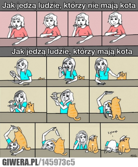 Tak jedzą ludzie którzy mają źle wychowanego kota.