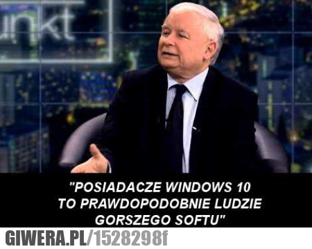 kaczyński nie ma pojęcia co to jest windows 10 a słowo soft to dla niego czarna magia, przecież ta ciota do niedawna nawet konta w banku nie miała