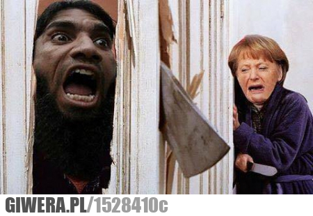 @anonim: Jezu -_- ta dzisiejsza młodzież. To jest przerobiony kadr z filmu lsnienie. To są drzwi i nikt i ich głową nie rozbił tylko siekierą. Chodziło o efekt grozy. Mąż postarał zmysły i to dobra metafora na małżeństwo niemieć i arabusow