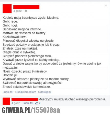 @anonim: Ależ te feministki ogłupiły ludzi... Jakby to miało jakiekolwiek znaczenie, porównywanie kobiet do mężczyzn to jak porównywanie jedzenia do srania i kłócenie się co jest ważniejsze.
