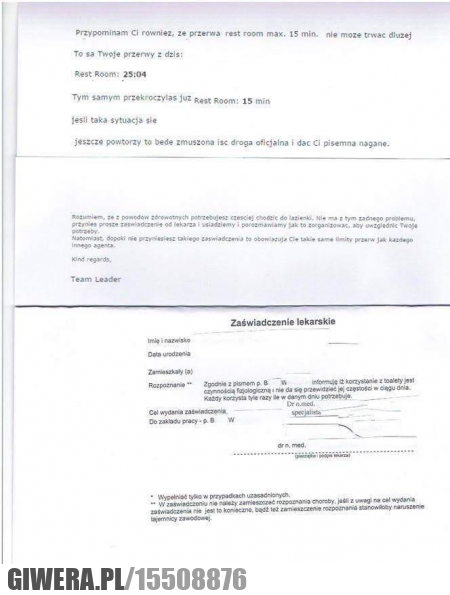 Kiedyś miałem wątpliwą przyjemność pracować aż 3 miesiące w korporacji i szczerze nie polecam tego kurestwa nikomu, nawet największemu wrogowi. Ciągły wyścig szczurów, sztuczna atmosfera, fałszywi ludzie, karierowicze od siedmiu boleści i najgorsze typy cwaniaków, którzy sprzedaliby piasek na pustyni własnej babci. No i absurdalna biurokracja jaką widać w tym konkretnym przypadku, po prostu żenada.