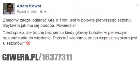 Powiedz koledze by nie oglądał ostatniego odcinka pierwszego sezonu , po nim świat już nie wygląda tak samo - to nie Walt Disney gdzie rycerz w ślniącej zbroj przybywa na swym gniadym rumaku i ratuje księżniczkę przed utratą dziewictwa :D