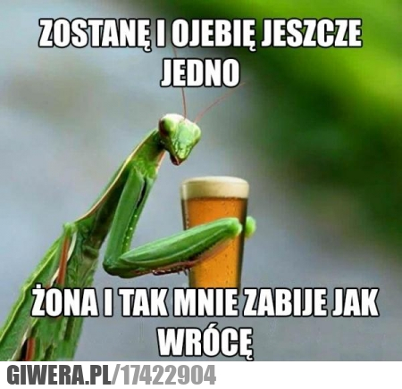 Modliszka trzyma piwo