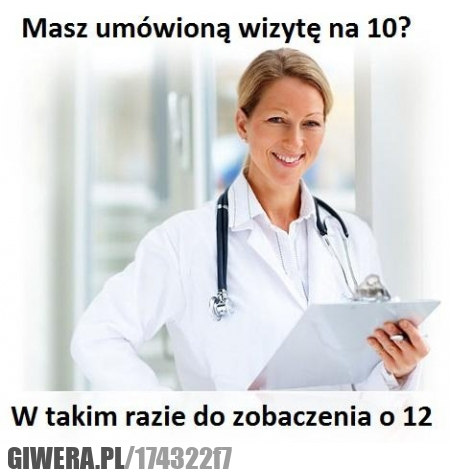 tylko w polsce, na zachodzie jak ma sie umowiaona wizyte to zawyczaj jest na czas, czasem 15 min poslizgu ;0