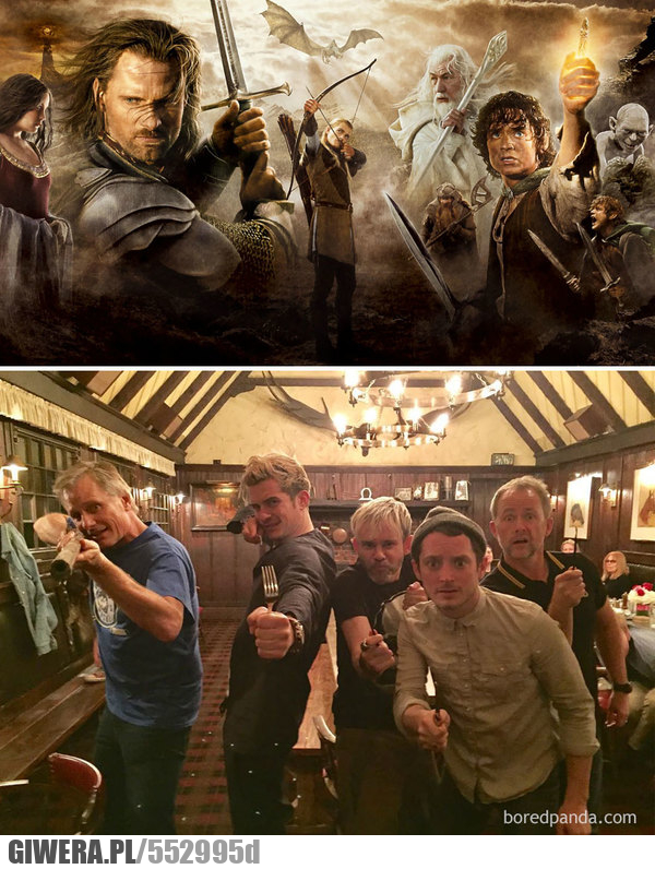 A po jego lewej Frodo Baggins, na dwa miesiące przed podróżą do Mordoru.