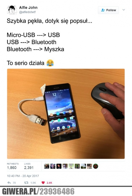 Rączka do góry kto jest zaskoczony? AndroidOS to system unixowy może was to zaskoczyć ale klawiaturę usb też możecie podpiąć. Jakąś prostą bez światełek i ceregieli bo strzeli wam w telefonie jakiś tranzystor albo bezpiecznik. Teoretycznie możecie też podpiąć drukarkę czy skaner. Jest też adapter MHL pozwalający podłączyć video_out z smartphona do TV. Smartphony to Komputery z radiem GSM.