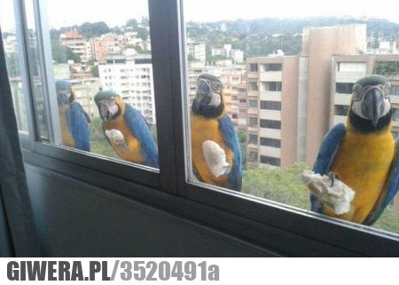 To jest jedna papuga tylko zdjecie zrobione 4 razy i sklejone