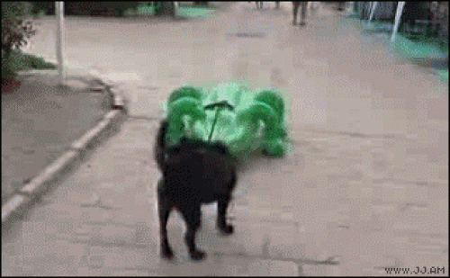 Pies uciekający przed sztucznym krokodylem. (1.49 MB)