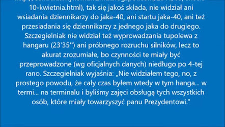Polska strona ! Kto wysłał redaktora Wiśniewskiego bez akredytacji ? Polska strona ! O jakim dyplomacie Polskim mówi Wiśniewski ? Polskim dyplomacie Tomaszu Turowskim. Wiśniewski biegnie z pokoju hotelowego nie lotniska . Z amatorską kamerą i do tego rżnie głupa tymi wywodami o kontaktach ze służbami Rosyjskimi. Jakoby był cwaniakiem z taśmami. Filmuje od wschodu lotniska ,ponieważ od strony zachodniej podłożona była inscenizacja katastrofy.